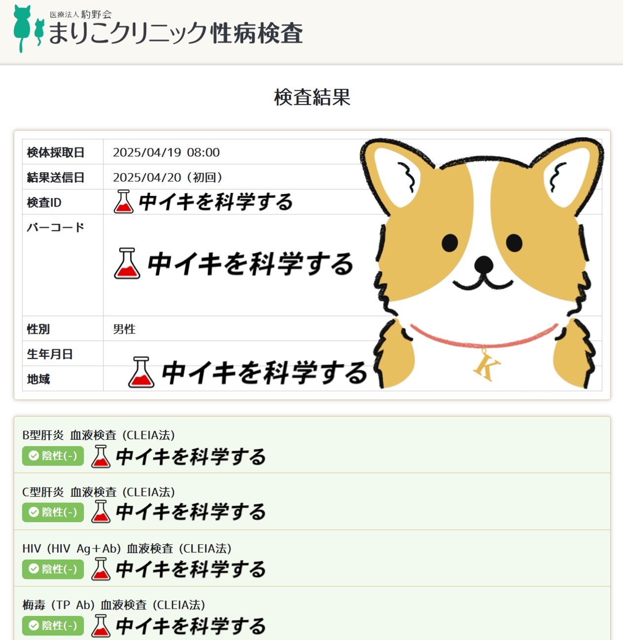 2022年後半~2024年はほぼ活動停止状態だったので、久々に性病検査を実施。